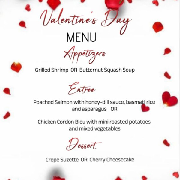 | February 14th | Valentine’s Day Dinner. 3:30PM – 7:30PM. Enjoy a romantic dinner at Dunlop Lake Lodge |